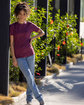 Fabric is 4.3 oz., 32 singles, 60% combed ringspun cotton, 40% polyester jersey. Shirt is made by Next Level Apparel has a recycling program for all fabric waste collected from the cutting process. All fabric scraps are sent to a recycling company that cleans and processes them to be used for cushion filling, rugs, etc. To date, 24.3M pounds of fabric have been recycled. Note: Fabric laundered for reduced shrinkage